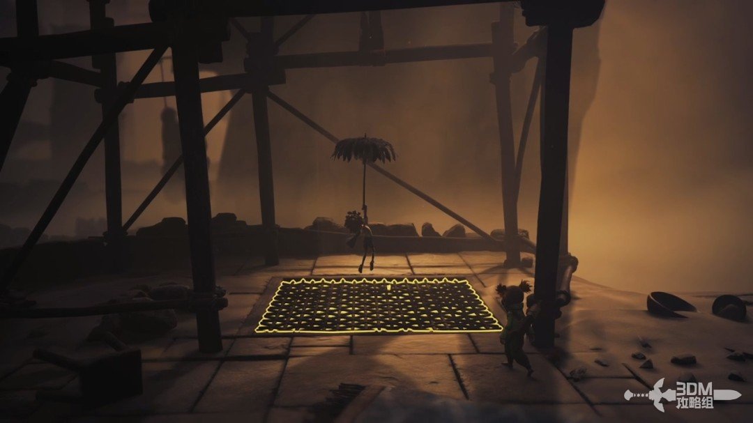 拿到雨伞后来中间按E使用雨伞,从风口上去。