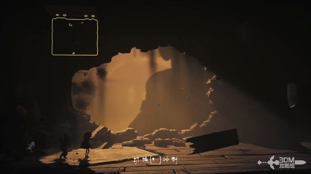 跳下来后巨婴的手会破墙而入,墙体会坍塌,我们要按SHIFT键全力往右跑。