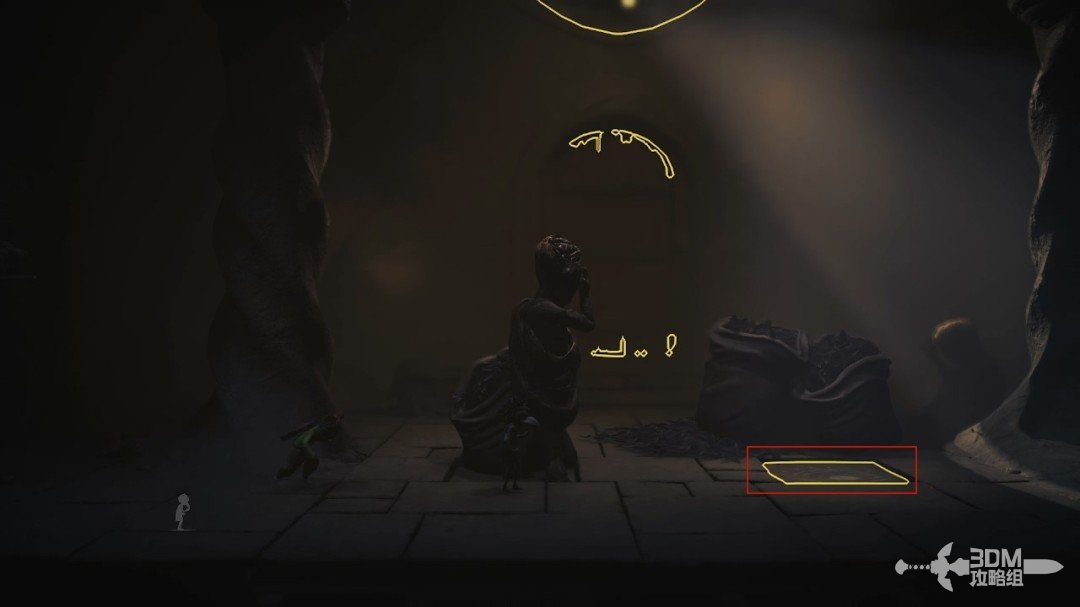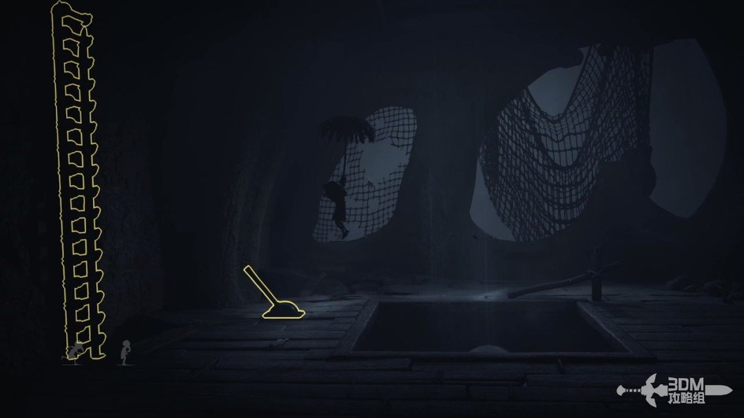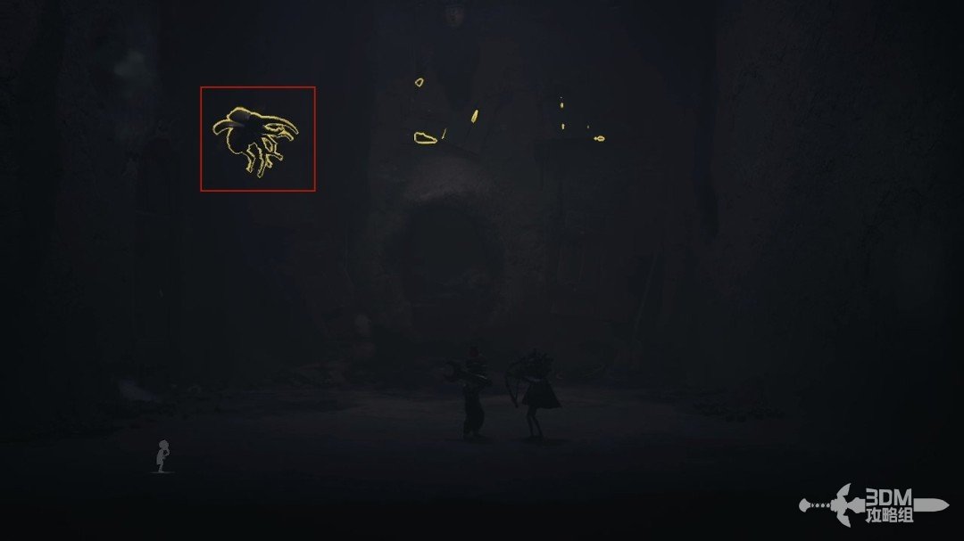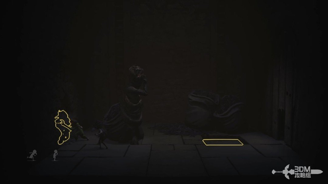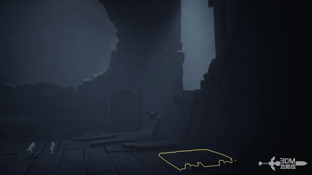 接下来走一段路来到一个房间,这里巨婴会再次出现。他会拿起中间的玩具(是玩具吗?),我们要从这个洞口跳下去。