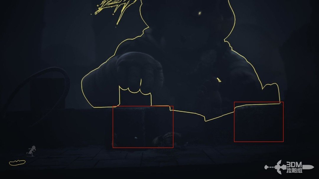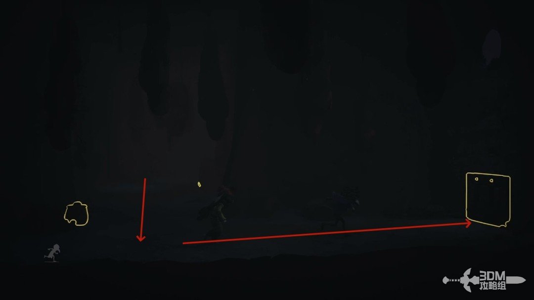 右边又会碰到巨婴,和之前一样,我们需要躲避他的视野。找好时机,移动到石头后面。