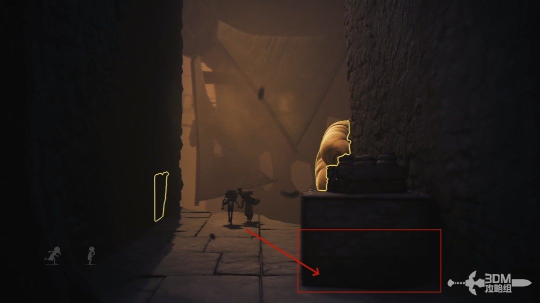 下来后往右边走,进隔壁以后巨婴会用“眼光”扫射附近,我们要找到规律躲在石头后面去踩前方的地板。