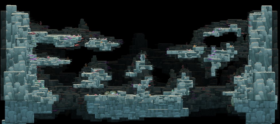 蓝洞的地图分为上中下三个部分,共有5个上层 5个中层和2个下层,每次戴夫开始潜水时生成地图,都是在这几张图里每部分随机抽一张拼接起一张完整的图