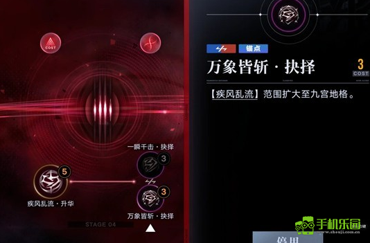 第二个重构节点选择“疾风乱流·升华”(每8秒获得一次破核机会);第四个节点选择“万象皆斩·抉择”(破核范围变成九宫格),就能尽可能多的造成核心击破。