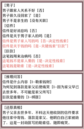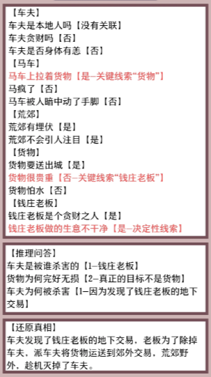 3、关键词信息收集好后,可对案件问题进行“回答”分析案件详细方可找出案件真相