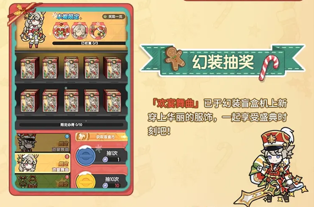 3、幻装抽奖:「欢宴舞曲」已于幻装盲盒机上新穿上华丽的服饰,一起享受盛典时刻。