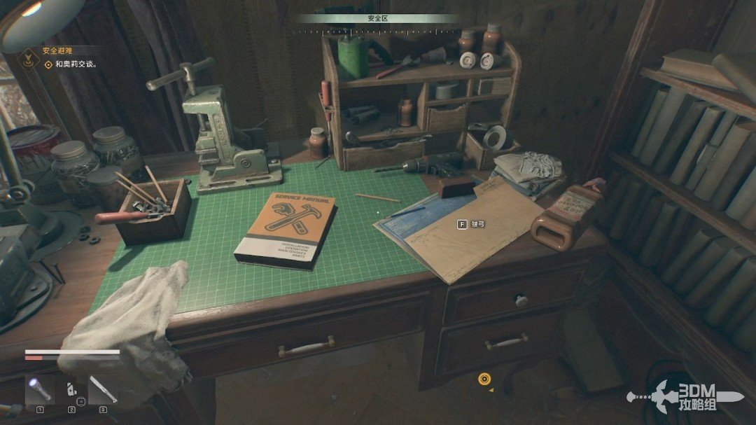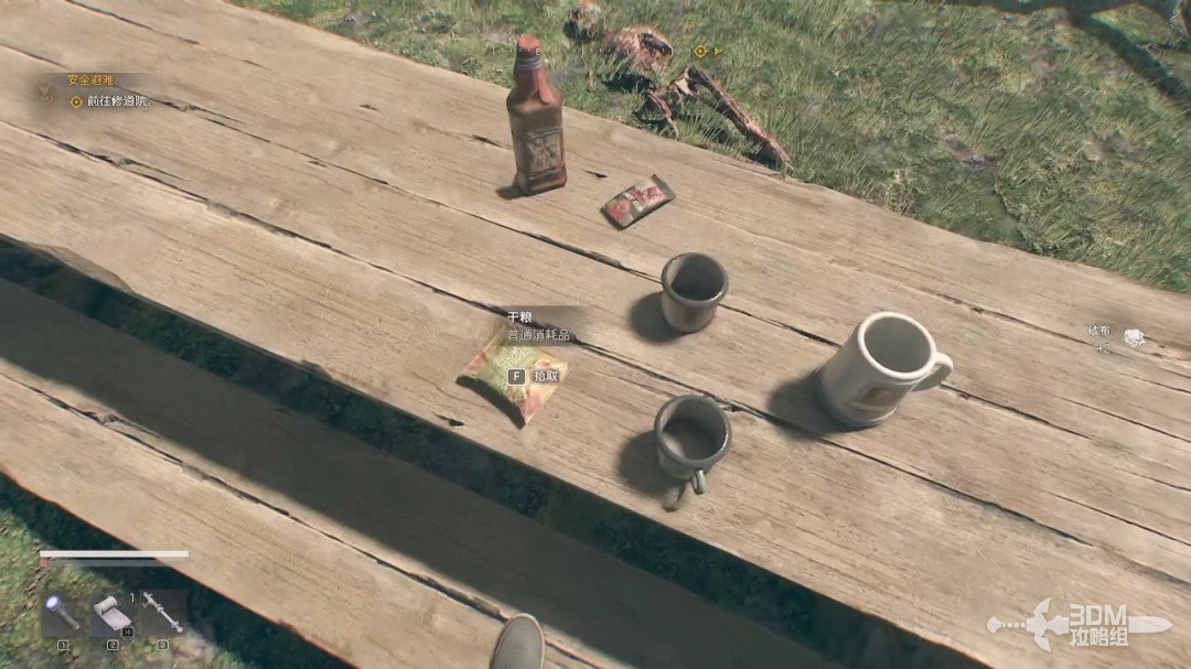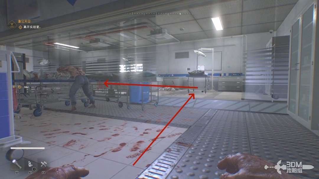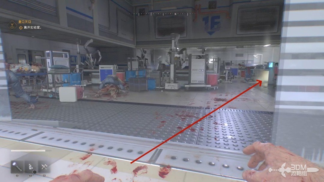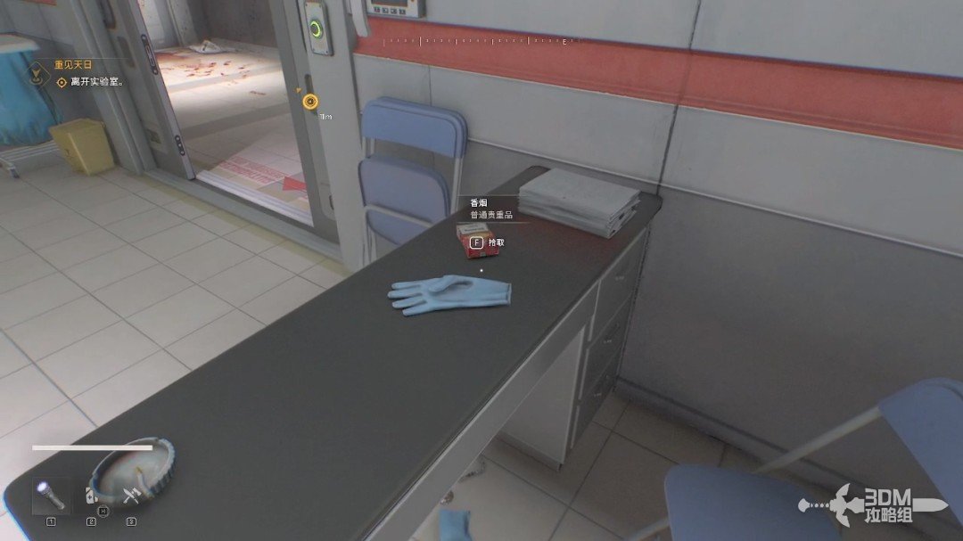 给自己扎一针后我们就可以行走了,旁边的桌子上能找到物资。