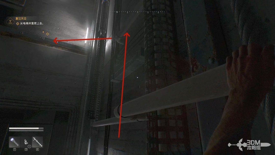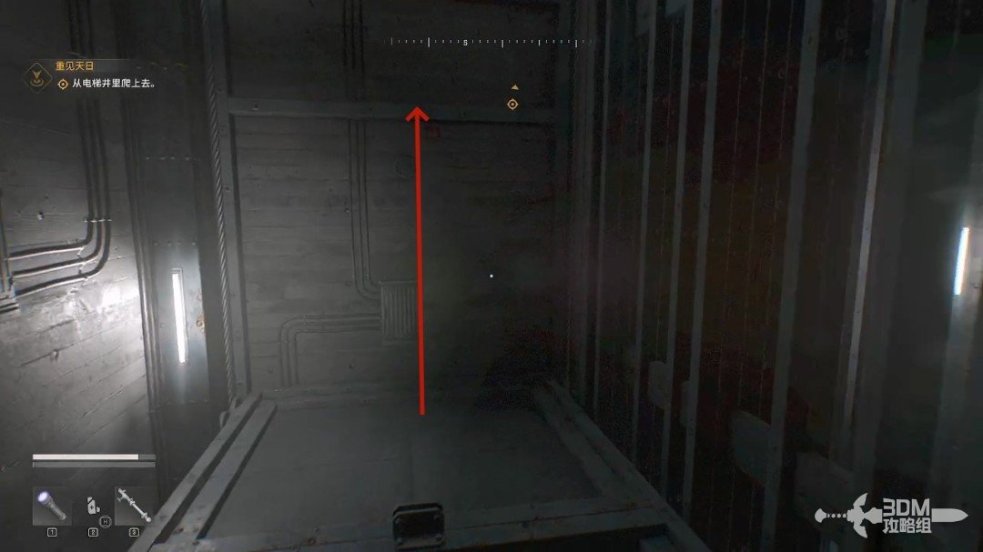 来到第一个平台上,走到这个电梯上方,我们继续往上。