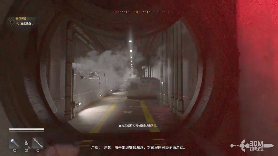 通风管道里面比较黑,我们可以按T键打开手电筒。
