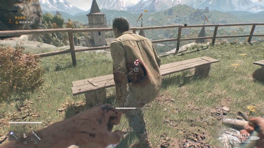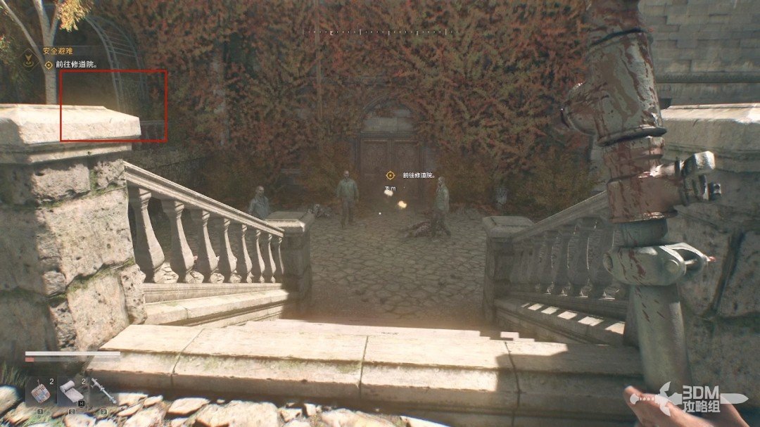 这一代依旧可以地形杀,楼上有一个背对我们的丧尸,可以直接按E踹它下去。