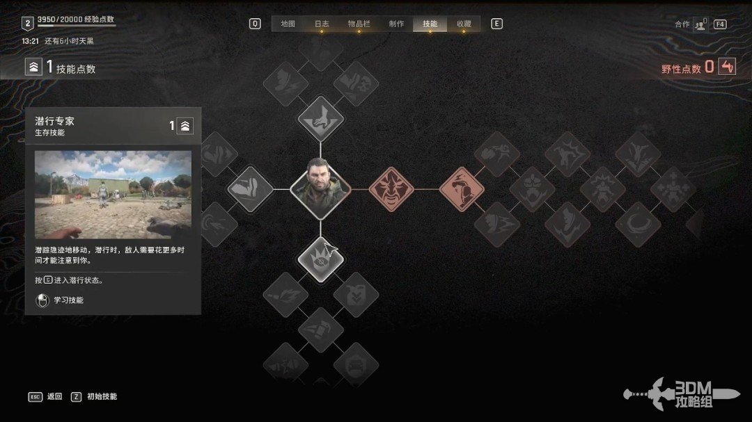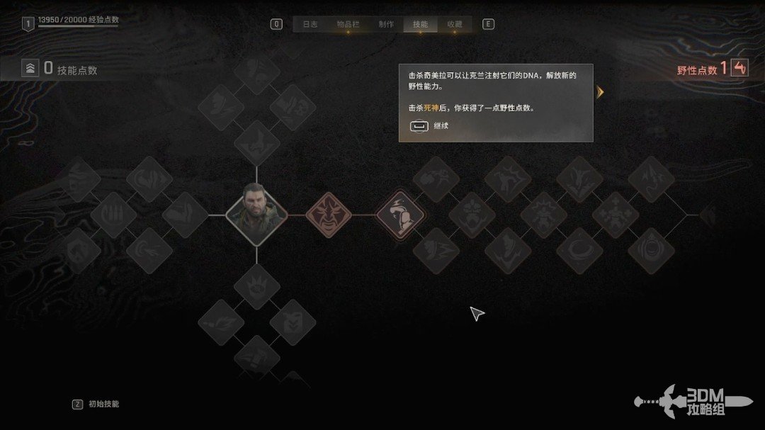 对话结束后我们获得了野性点数,野性点数可以用来升级野性能力,也就是我们变成怪物以后的技能。