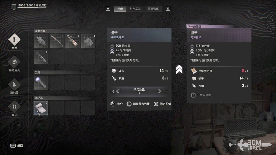 在工作台里面可以升级我们的道具,不过需要材料。