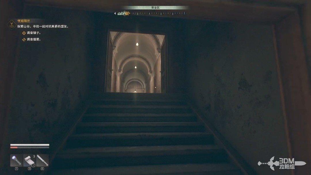 踹下去后和旁边的闸互动一下,打开安全屋的灯。