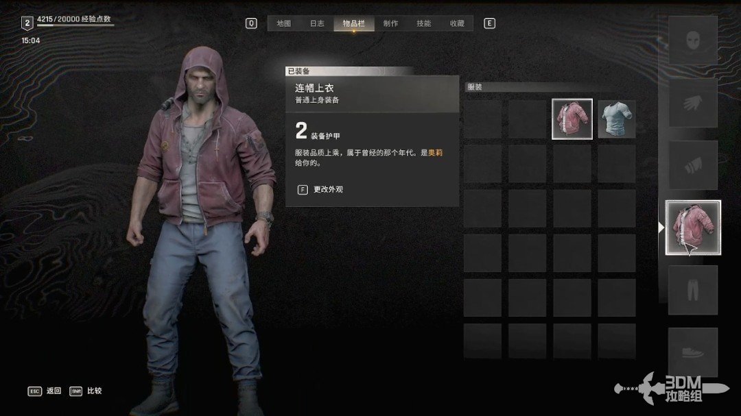 出去之前可以给自己换一身衣服,按I键可以打开菜单栏。