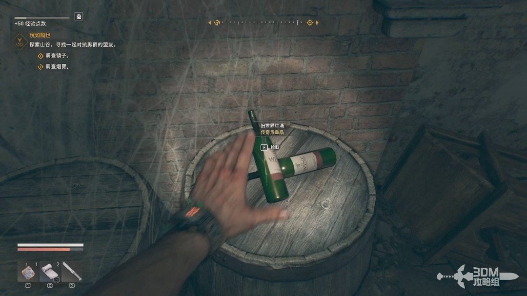 里面是个酒窖,里面能发现不少红酒(四瓶),品质是传奇的。