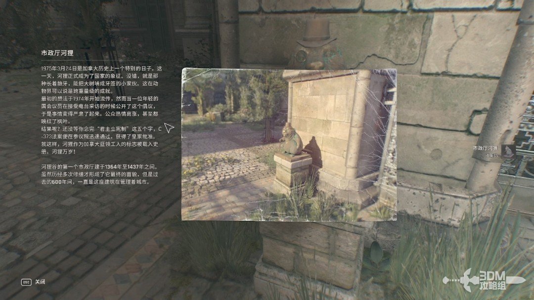 把这些丧尸处理掉后,我们钻出去,右手边能获得一个收集品,市政厅河狸(懒得杀丧尸的可以下次再来拿,我们还会来这里)。