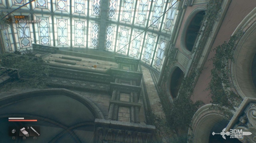 上来后我们可以直接踩着前面的钟表爬上红框处的白色石墙,接着跳到左边的白墙。