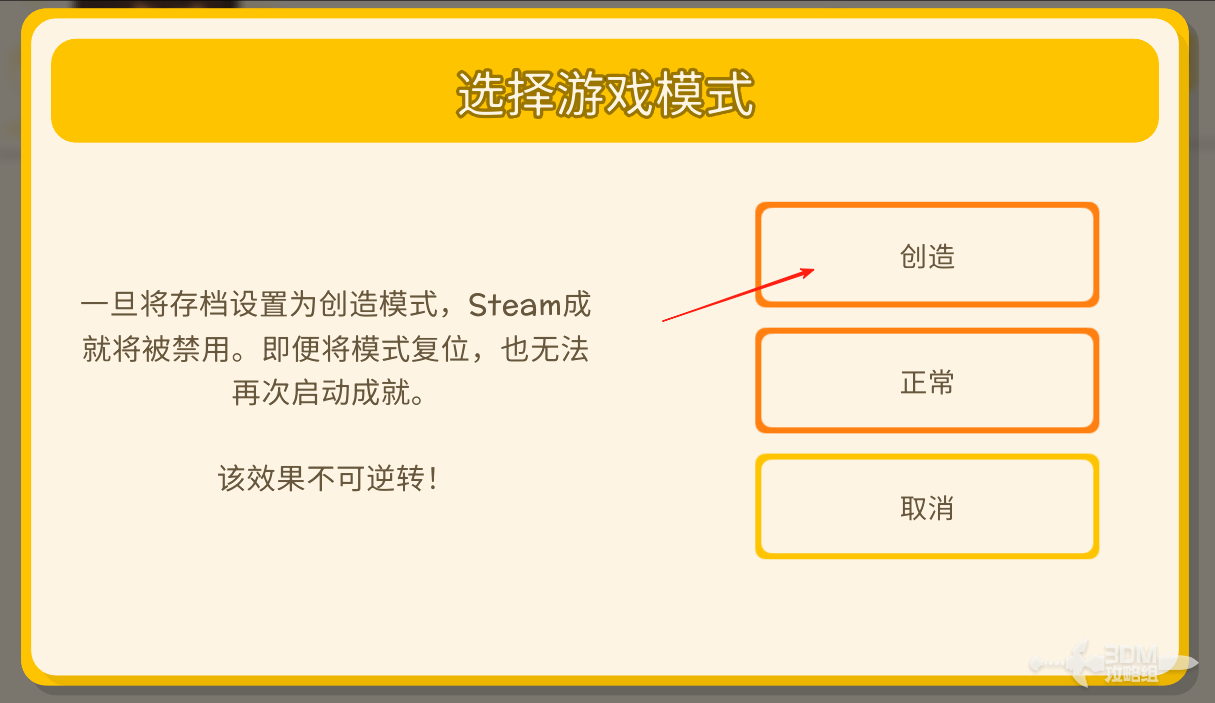 一旦将存档设置为创造模式,Steam成就将被禁用。即便将模式复位,也无法再次启动成就。