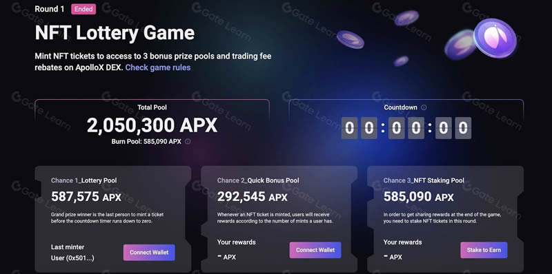 APX NFT 彩漂游戏是一个用户可以铸造 NFT 门票以获得三项奖金的平台。奖金包括:
