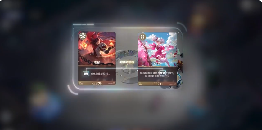 以周瑜为例:其登场即触发“全体英雄等级+1”关键词效果;若此时小乔在场,其关键词可与该效果形成二次联动,进一步推高全队等级。值得注意的是,英雄一旦上阵便不可撤回手牌,仅当累计打出4张相同英雄卡牌后,方可触发“英雄觉醒”,使其回归可调度状态。