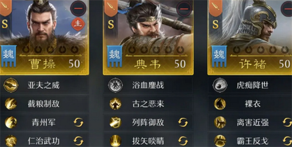 常见配置为虎卫反击枪体系,由曹操担任主将,利用其增伤与治疗能力,配合多名携带反击技能的武将与兵种技能,最大化反击收益。