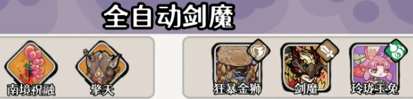 首推“剑魔流”——单核爆发型阵容。核心角色为剑魔,定位为绝对主C,需装配晴天与赤霄两把专属武器。该配置可触发必定先手+先手攻击即回怒的连动效果,使其首轮输出稳定触发必暴,伤害溢出后快速返还怒气,实现高频循环输出。辅助位狮子担任豪侠,提供全队增伤;兔子则承担治疗职能,持续恢复前排生命值,保障剑魔持续站场能力。整套阵容成型门槛低、节奏紧凑,适合新手阶段快速铺开战力。