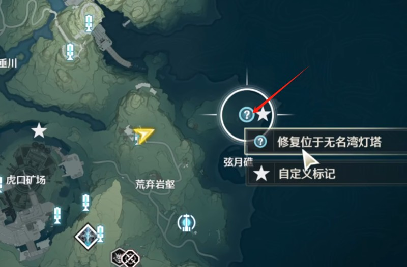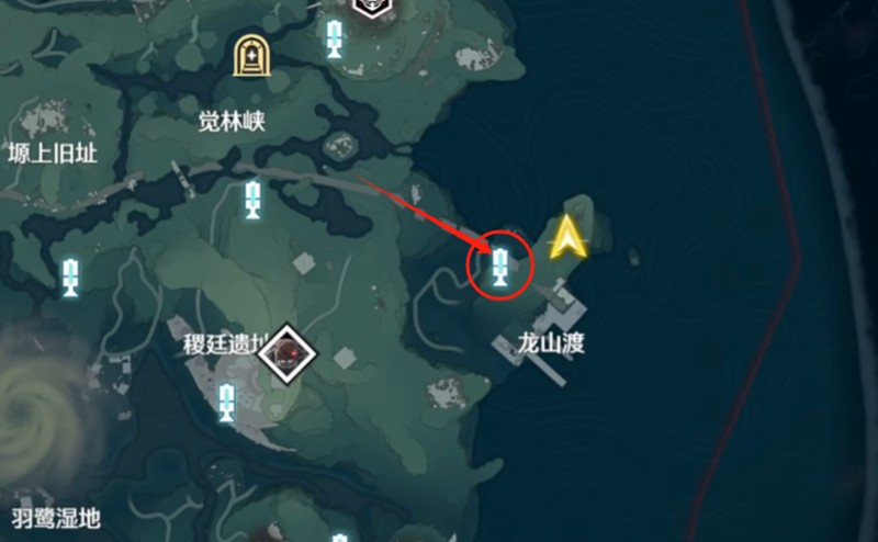 4.第三座灯塔在龙山渡左上方信标处。第四座灯塔位于潮生涯右侧的信标处。
