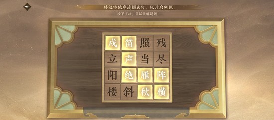 1. 古道遗响环节汉字依次为:戍笛声绝雁阵横秋