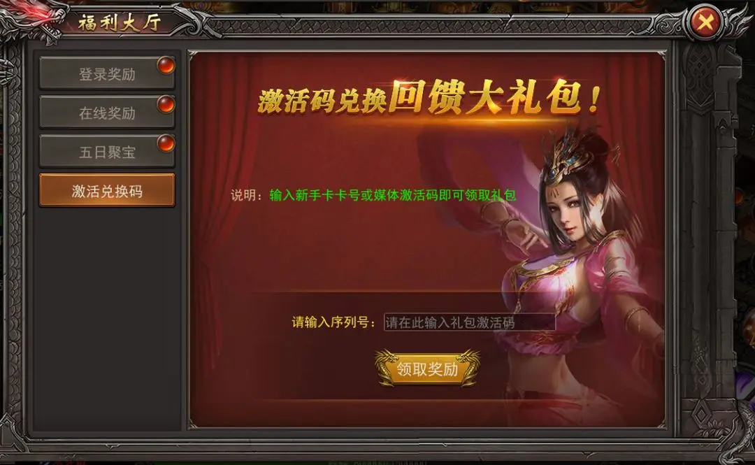 3、输入上述礼包码内容并点击领取奖励即可