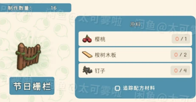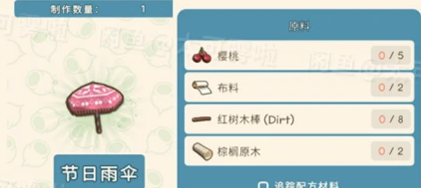 樱桃*5、布料*2、红树木棒*8、棕榈原木*2