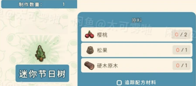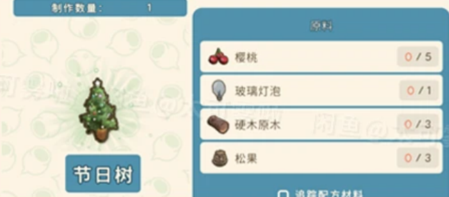 金垦小镇圣诞节物品有节日礼盒、节日栅栏、壁炉、姜饼小道、迷你节日树、节日树、节日浴巾、节日雨伞、节日手提式音响、节日袋鼠、节日灯、节日花彩、节日稻草人、节日桌子、节日椅子。各个物品都需要对应的材料来进行制作,下文是详细的各个物品所需的材料大全!