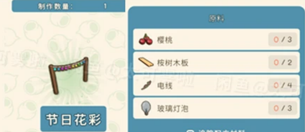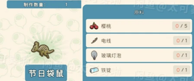 樱桃*5、电线*1、玻璃灯泡*1、铁锭*1