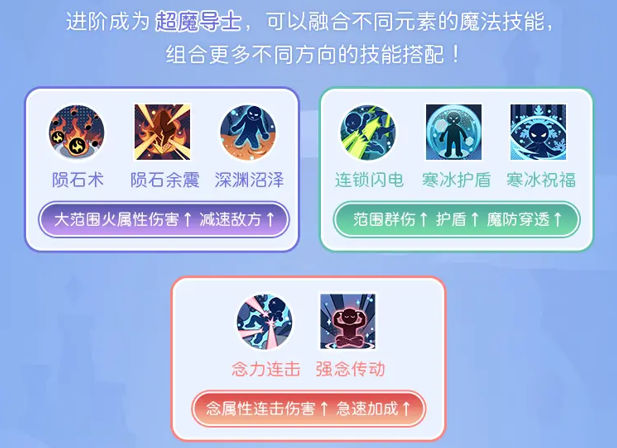 4、进阶成为超魔导士,可以融合不同元素的魔法技能,组合更多不同方向的技能搭配!