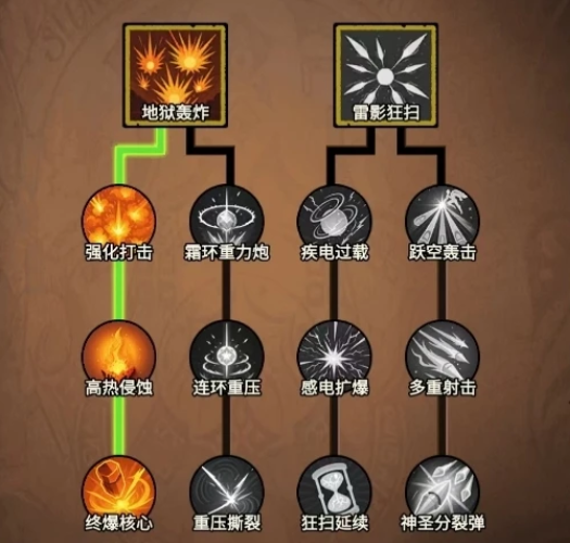 第二个为大家介绍的就是火焰流,这个流派的话,其实前期比较依赖的是燃爆炸弹,这个技能,也会在其中燃爆炸弹带来的群体类型伤害也可以快速的清除敌人,后期如果解锁了终爆核心的话,在其中还有一定的装备进行加成,那么它的火焰流派效果就可以正式成型,这里建议大家搭配的装备叫做赤影纹章套装,这个套装目前给流派角色的话可以带来大面积的伤害,此时给敌人带来一些会员类型的持续能力之后,根据其中的大面积伤害还可以引发一个连锁引爆的效果,当然这个效果是根据其中普攻继承了燃爆炸弹之后的能力来进行引爆的,所以在这里如果大家玩火焰流的话,一般情况下可以达到的群体清除速度会比其他的流派更高一些,操作来说也是更加轻松的,毕竟这样一个大范围的攻击,只要大家装备的等级达到标准的话,那么这个关卡里面其实得到的远程输出特性是可以用来玩风筝战术的。