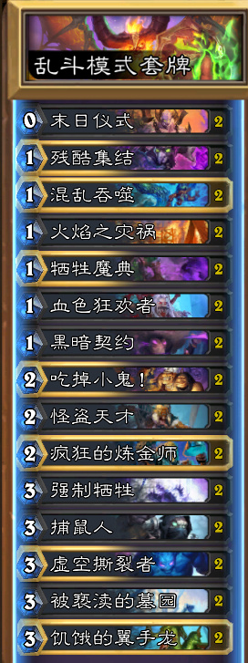 需要消灭自己的场面,所以用术士最方便了,可以轻松的组出30张消灭的卡组来。