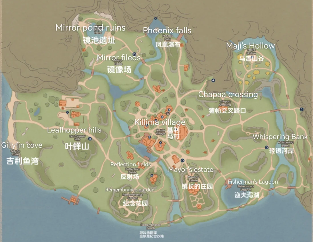 Palia帕利亚地图中英文对照查询表