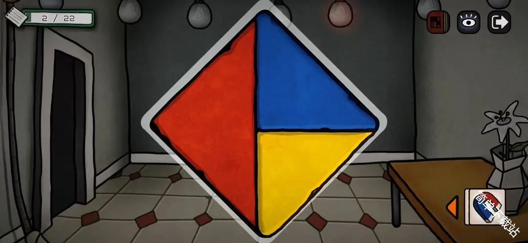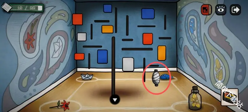 20、来带有星星图案的房间,把零件装上,根据路标/指向标线索,右下↘左←左上↖右→,获得1个星星道具