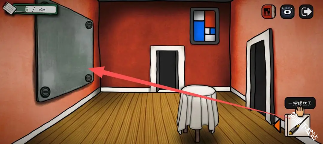 5、进去之后点几次这个画,画掉了之后获得道具手电筒