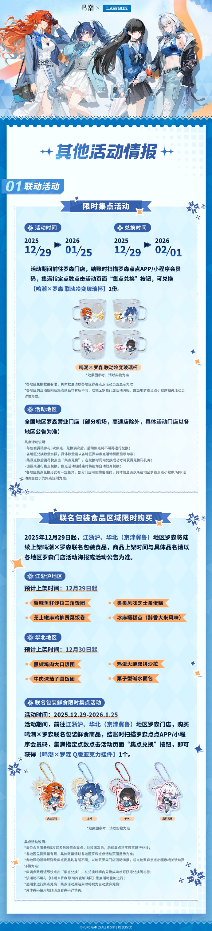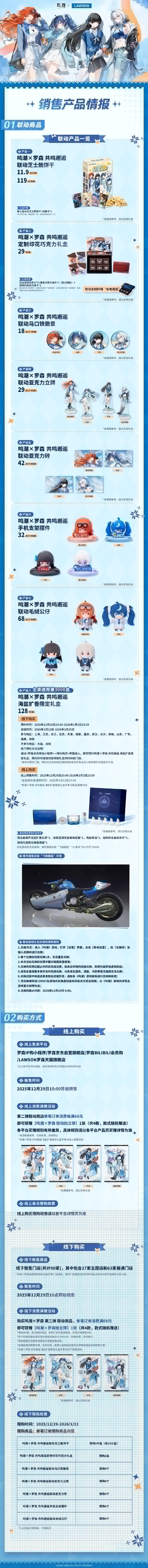 2025年12月29日起各地区主题店将陆续开启,全国27家鸣潮×罗森主题门店将正式上线,欢迎各位漂泊者到店打卡!