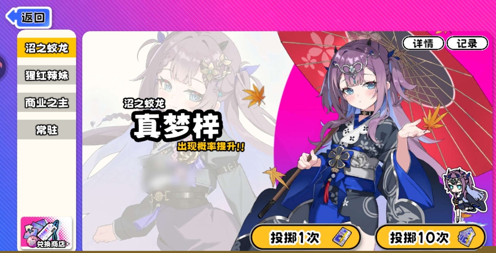 游戏内卡池分为两类:常驻卡池与限定UP卡池。常驻池开放全部已实装角色,各角色基础出率均等,且不支持定向选择;而UP卡池虽同样涵盖全角色池,但当期UP角色享有概率加成。所有卡池均使用抽奖劵进行抽取,且统一设置40抽必得一名角色的保底规则。需注意的是,不同卡池保底独立计算,UP卡池不设“必出UP角色”的硬性保底,而是采用星之积木累计兑换机制。