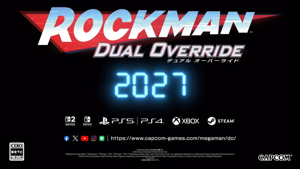 CAPCOM 今日在「The Game Awards 2025」颁奖典礼上突袭公布《洛克人》系列最新作《洛克人:双重超载(暂译,原名:ROCKMAN: Dual Overrid)》,并确认本作定位相当于「第 12 款系列本传」,将登陆 Nintendo Switch 2 / Nintendo Switch / PS5 / PS4 / Xbox / PC(Steam)平台。
