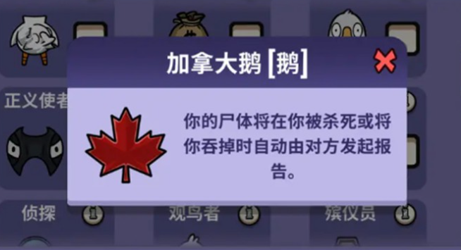 加拿大鹅属于战术诱饵型角色,其被动机制可在被击杀或被吞食瞬间强制触发紧急会议。建议提前与可信队友同步身份信息,主动制造孤立行动假象吸引鸭子攻击,通过会议开启时机反向锁定行凶者位置,实现高效率身份揭露。