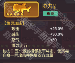 金鱼同心可以让3号位置的张角和5号位置的曹仁触发被动!