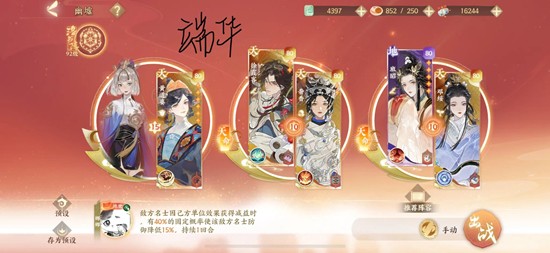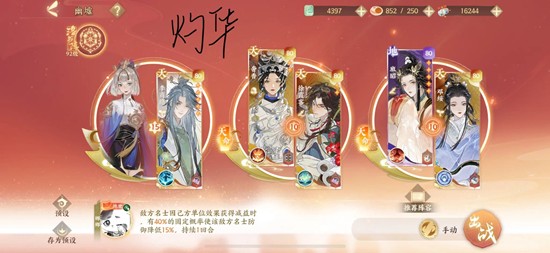 文曲:这关最好先打李师师,要不然后期李师师一个特性奶一万还净化建议特别容易伤害不够!如果生存压力很大的话建议第一第二回合邓绥特性分别给韩非于谦,第三回合再开大生存压力能小很多