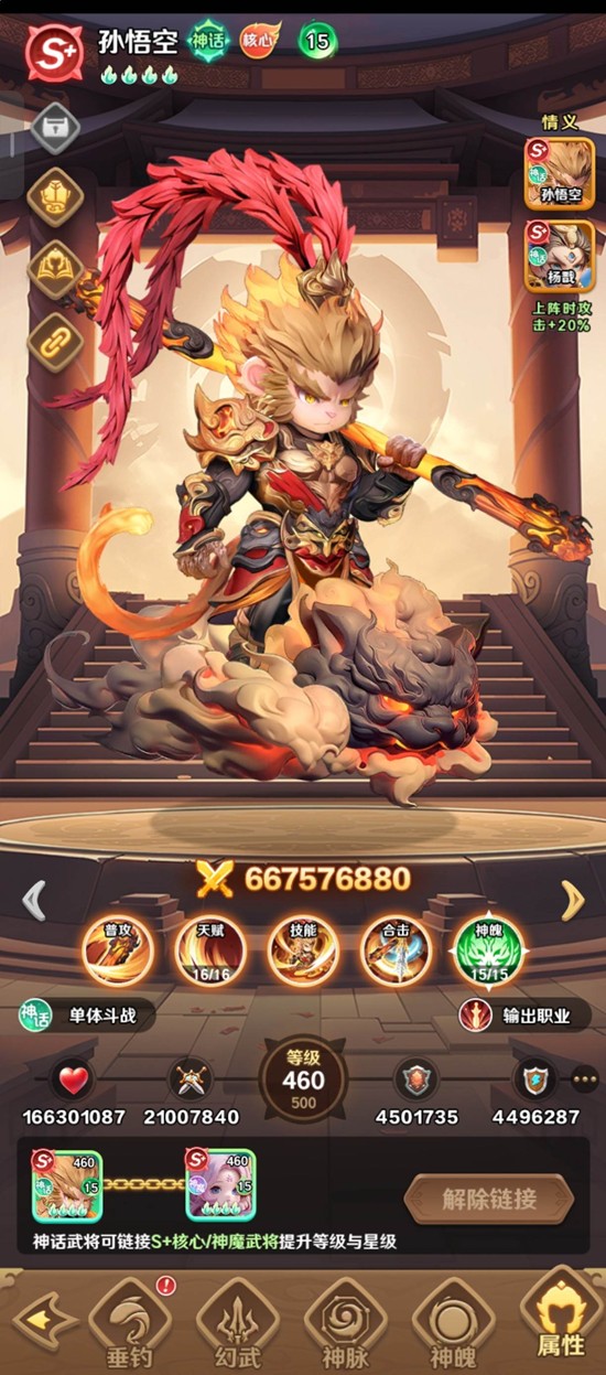 孙悟空作为另一位神魔武将,拥有先手压制和回合免疫控制的能力,能在战斗初期就建立优势。吕布则扮演着爆发收割的角色,他的技能可以对残血目标实现精准斩杀,快速清理战场。这套阵容在巨神军师的PVE推图和PVP竞技场中都有不错的表现,适用性较广。