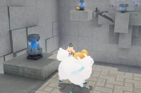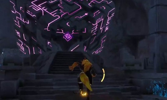 收集齐所有能量后,下一扇大门将打开。前方会出现一个类似魔方的大型建筑,周围环绕着高台。此时,玩家可以变身成具备飞行能力的伊莫宠物,快速抵达指定位置并进行交互。成功操作后,最后的屏障将会解除。