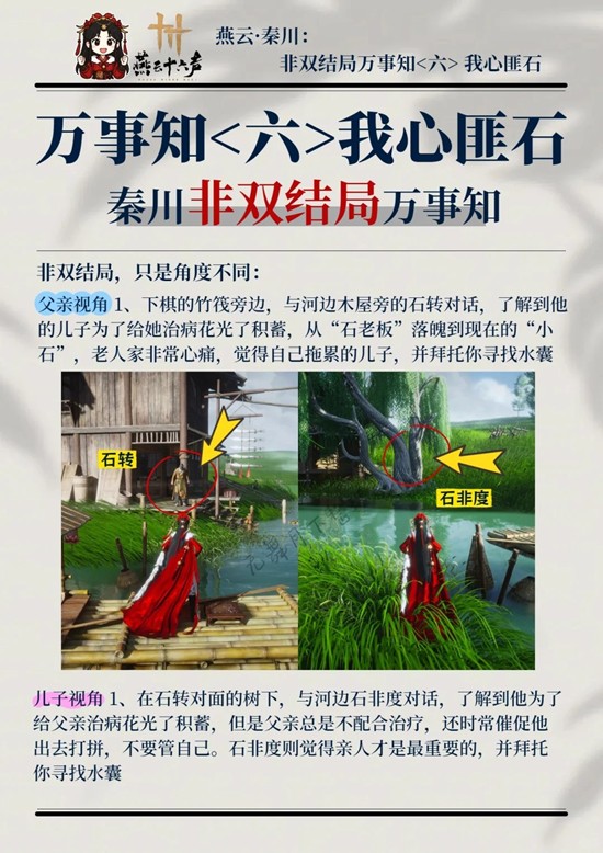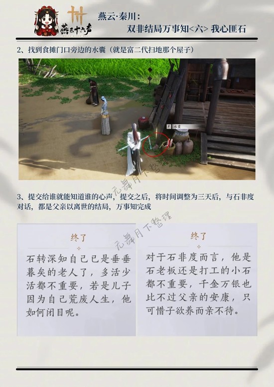 以上就是燕云十六声秦川结局万事知,天意难为和我心匪石攻略的全部内容了,更多游戏资讯,攻略内容敬请关注,您的支持是我们努力的动力!
