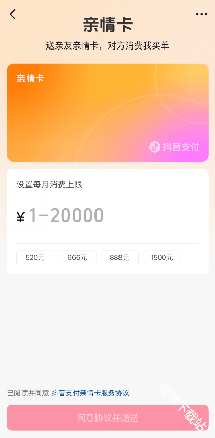 在抖音中点击进入我的钱包,然后找到抖音支付选项,选择其中的亲情卡选项之后就可以设定每个月的消费上限金额,设定完毕后就可以赠送需要亲情卡的好友了。