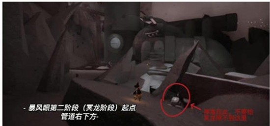 2.第二个神坛位于暴风眼第二阶段冥龙区域。玩家进入该区域后,在起点管道的右下方就能发现这座神坛。这个位置相对安全,玩家不必担心被冥龙发现,可以安心进行神坛的互动操作。