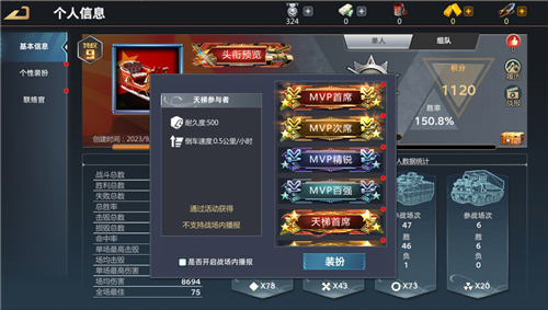 在本次更新中,头衔系统将开放“最强天梯”头衔及“MVP选手”头衔。玩家可参与天梯模式争夺天梯排行名次,系统将根据每日天梯单人排行榜的名次,为达到指定名次的玩家激活“天梯专属头衔”,名次靠前的头衔将会在进战系统进行播报。同时,系统将根据玩家每周最高15场的天梯MVP积分进行排行,每周结算“MVP选手”头衔,并发放对应奖励。