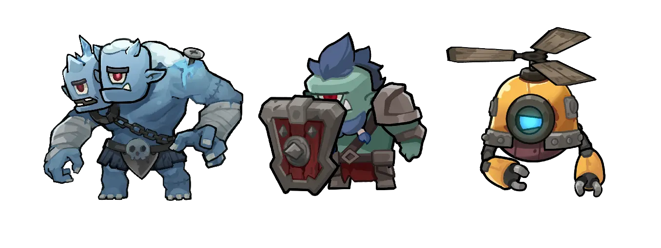 双头绿皮:对射手英雄拥有30%的抗性,死亡分裂为两只绿皮。钢盾哥布林:抵挡穿透类攻击和技能并减免射手60%伤害,无法被击退击飞,受到毒系伤害提升30%。